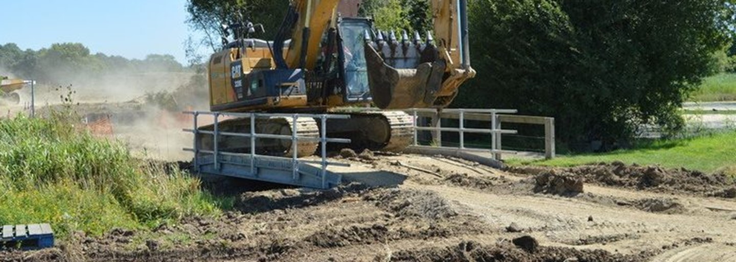 Ce système modulaire facile à monter en acier galvanisé peut supporter sans problèmes des charges allant jusqu'à 80 tonnes lorsqu'elles sont réparties sur 6 essieux à une distance de 1,2 mètre.De plus, il s’ajuste en largeur par tranches de deux mètres.Les ponts peuvent être montés et utilisés immédiatement, car aucune rampe supplémentaire n'est nécessaire.